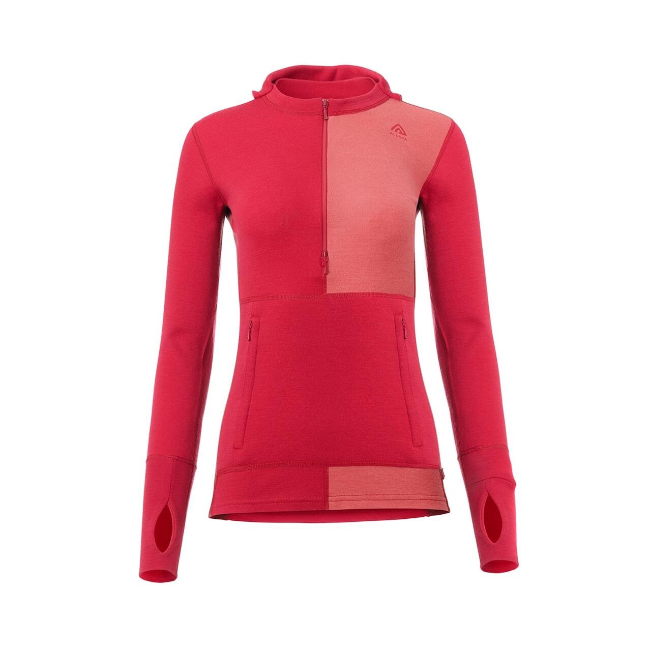 Aclima Womens Warmwool Hood Sweater Zip i farven Rød Jesterred Spicedcrl Spicedappl er et must-have til kolde dage. Denne sweater kombinerer stil og funktionalitet, hvilket gør den ideel til både hverdag og udendørs aktiviteter.