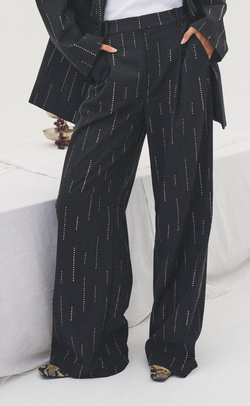 Bukser fra Gestuz Sorte bukser fra Gestuz med lige ben og diskrete lodrette mønsterdetaljer - ideelle til et moderne og elegant look.