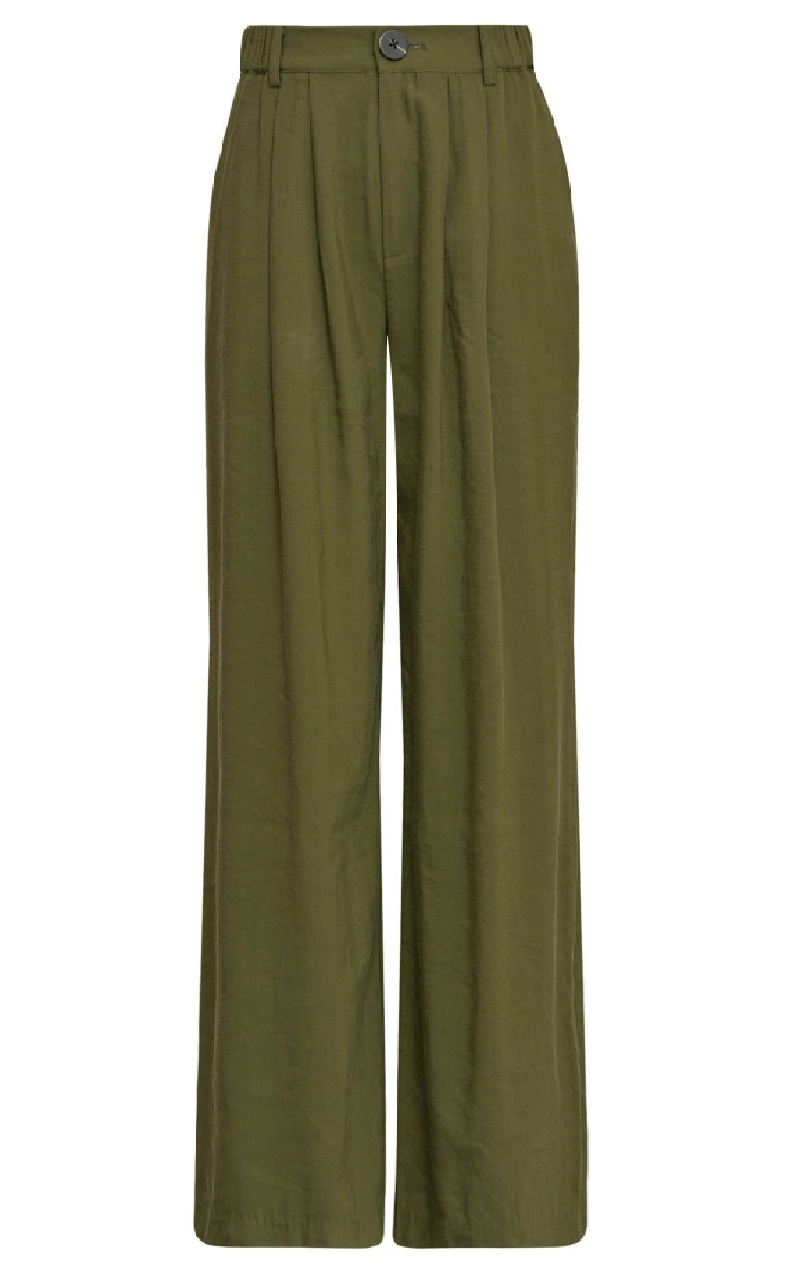 Bukser fra Gossia Højtaljede bukser med brede ben fra Gossia. Buksen har elastik i siderne i linningen, hvilket gør pasformen meget behagelig. Regulær pasform. Størrelsesguide: Talje:XS66 cm, S70 cm, M74 cm, L80 cm, XL86 cm Inder søm:XS78 cm, S78 c